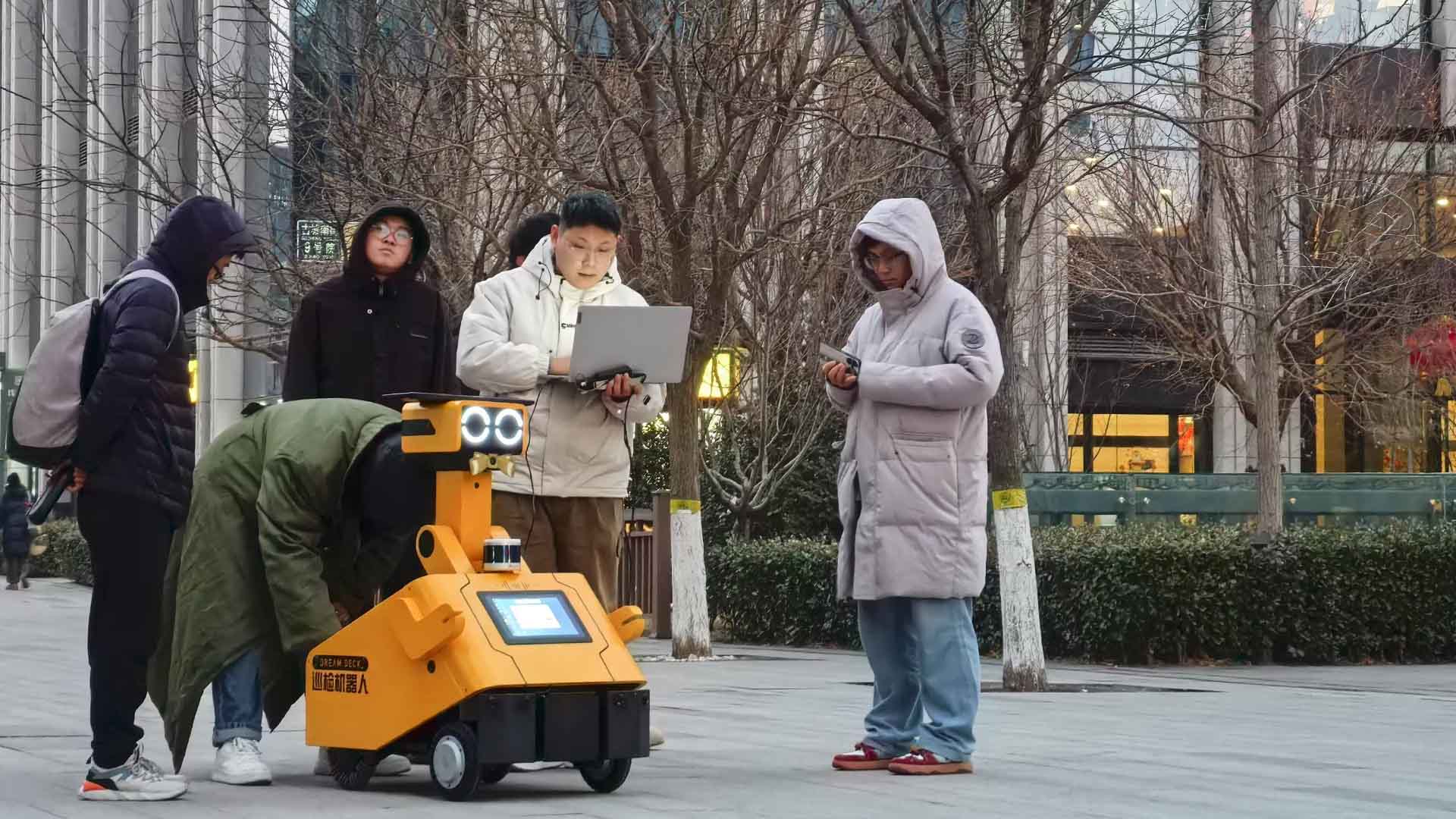 Visual Strategies: Visual perception outputs are also mapped into interaction strategies. When unwanted behaviors such as smoking or walking dogs are detected, the robot sends a signal to the backend, issues a voice warning to the individual involved, and directs the navigation system to keep following the case. In more serious scenarios - such as detecting a person who has fallen or groups engaged in fighting - the system sends emergency calls to the backend to alert part guards for assistance.